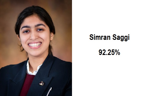 Akshit Chhabra of the Medical Stream is the Tri-city Topper, having achieved a superlative 96.25%. In 2nd position is Simran Saggi with 92.25%. School top rankers in the Non Medical Stream are Soumya Nayyar with 95.75%, followed by three students sharing the 2nd position, Ansh Gupta, Devansh Gupta and Gulneet Kaur Gulati with a score of 94.50% each. Aryamaan Singh Pasricha, with 90% is in the 3rd position.