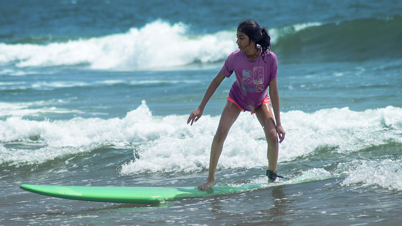 Start with safety drills in the shallow water followed by learning how to pop-up and stand on the board. Soon enough you’re ready to catch the waves! As comfort levels rise so does the challenge—progress from the shallow water and move further to catch bigger waves.